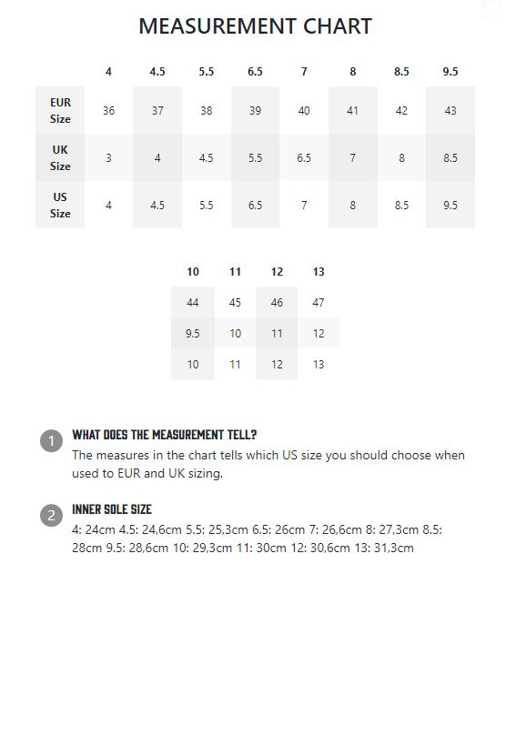 These Hi-Tops are unisex and available in US sizes 4-13. Check out the size chart for conversions.