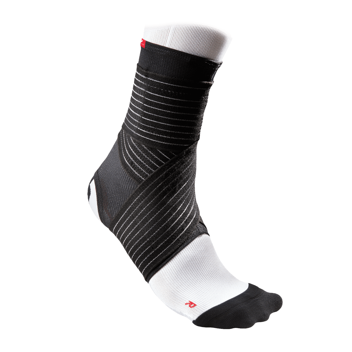 - Pull-on foot sleeve with adjustable, elastic figure-8 straps with hook and loop closure.