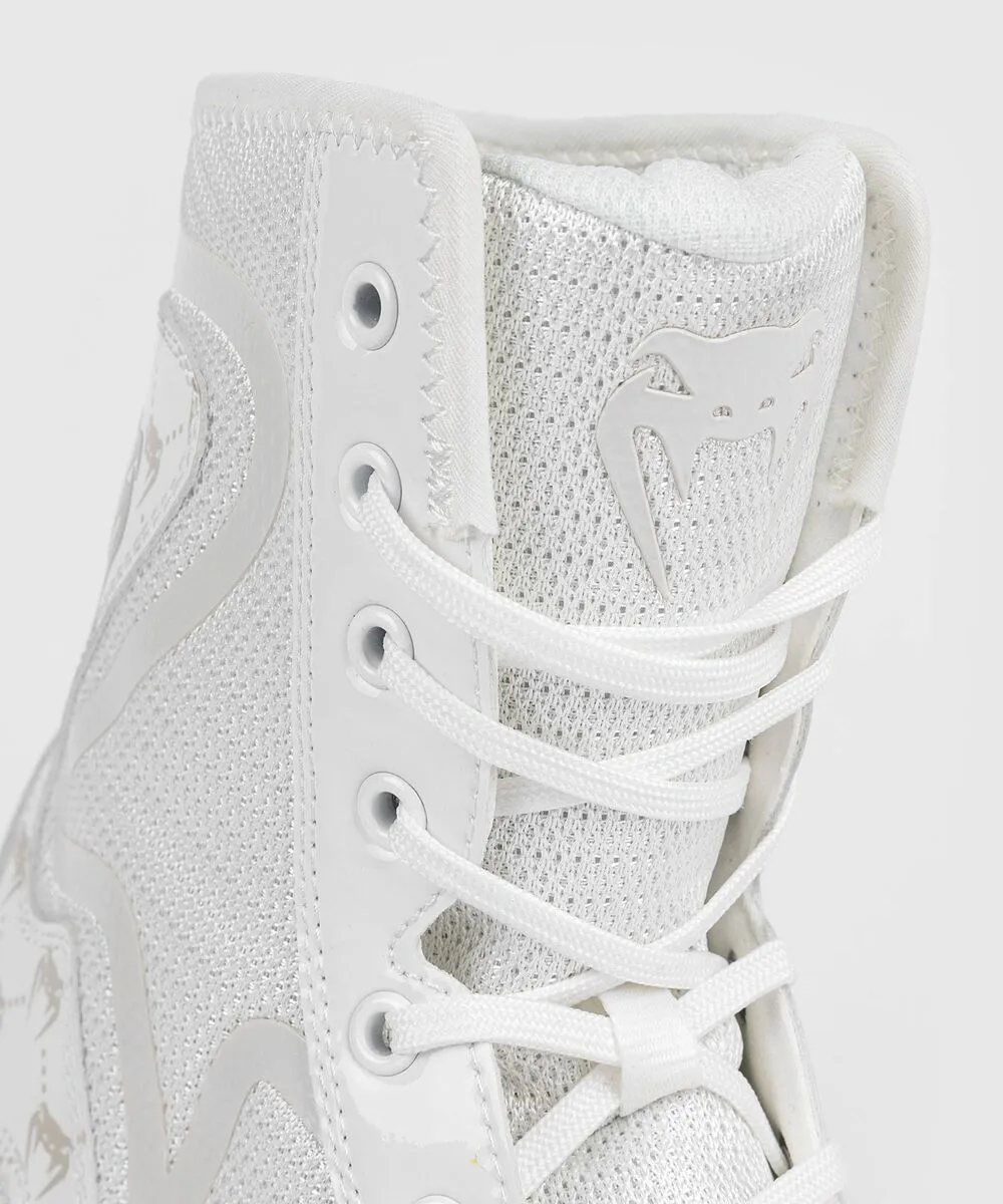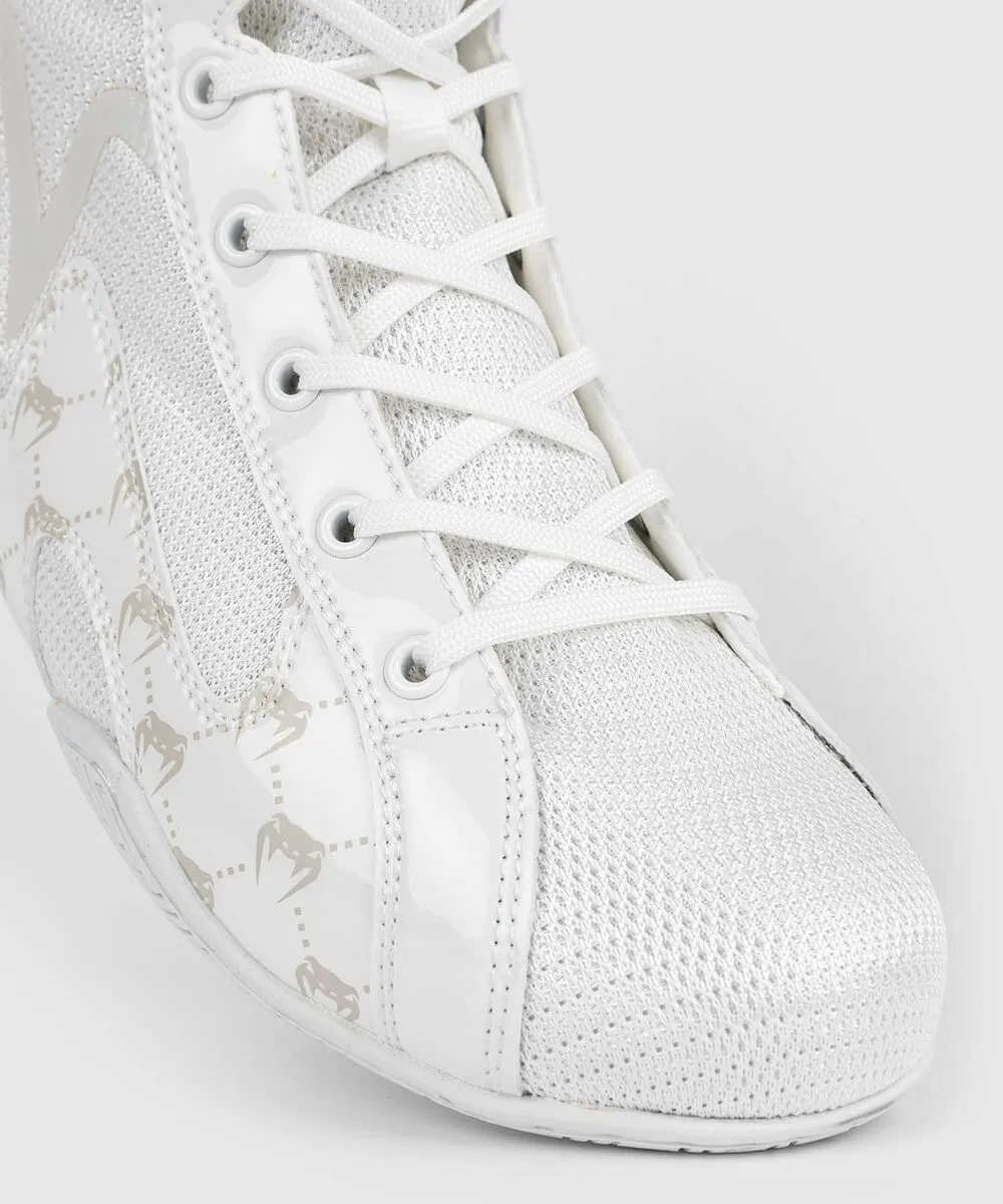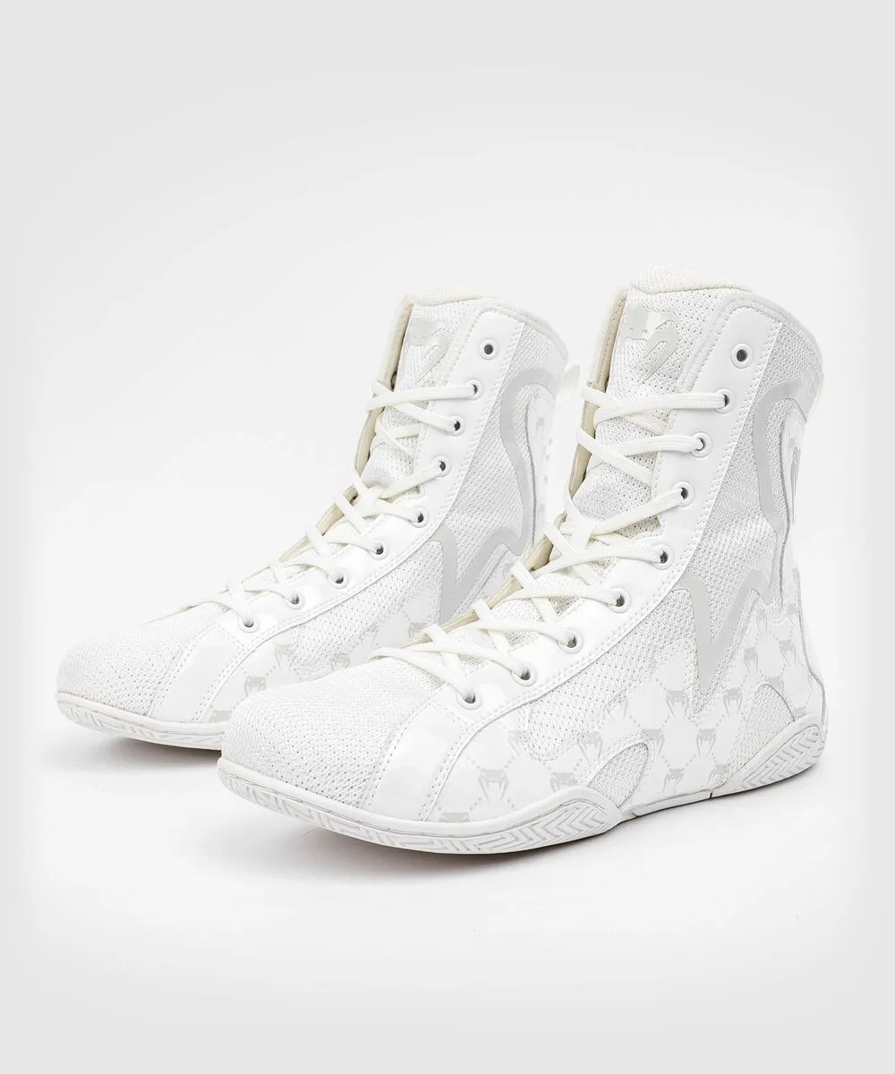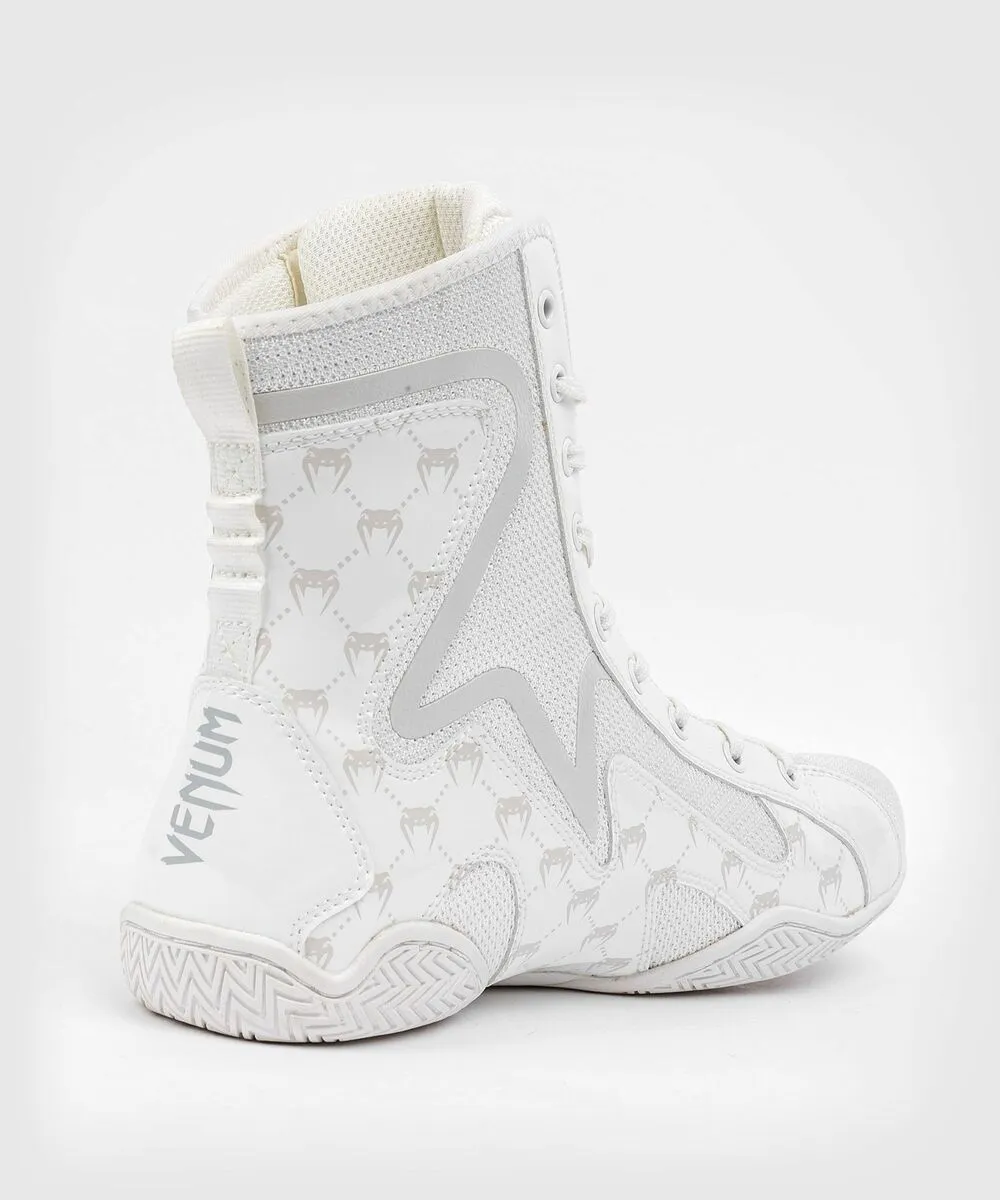 The Venum Elite Monogram Boxing Shoe offers the perfect balance between stability on the canvas and lightweight mobility.