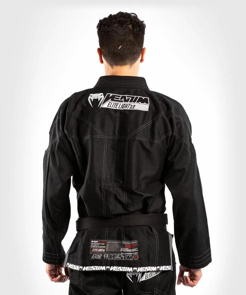 The Venum Elite 3.0 Brazilian Jiu-Jitsu kimono consists of a 450 gsm Pearl Wave cotton jacket solidly reinforced across all tension points for increased durability.