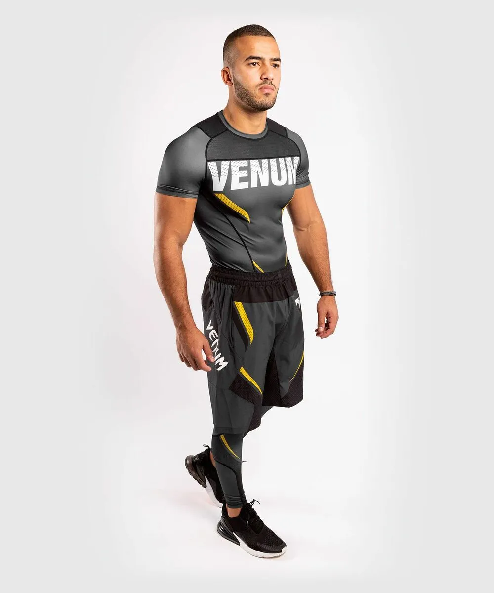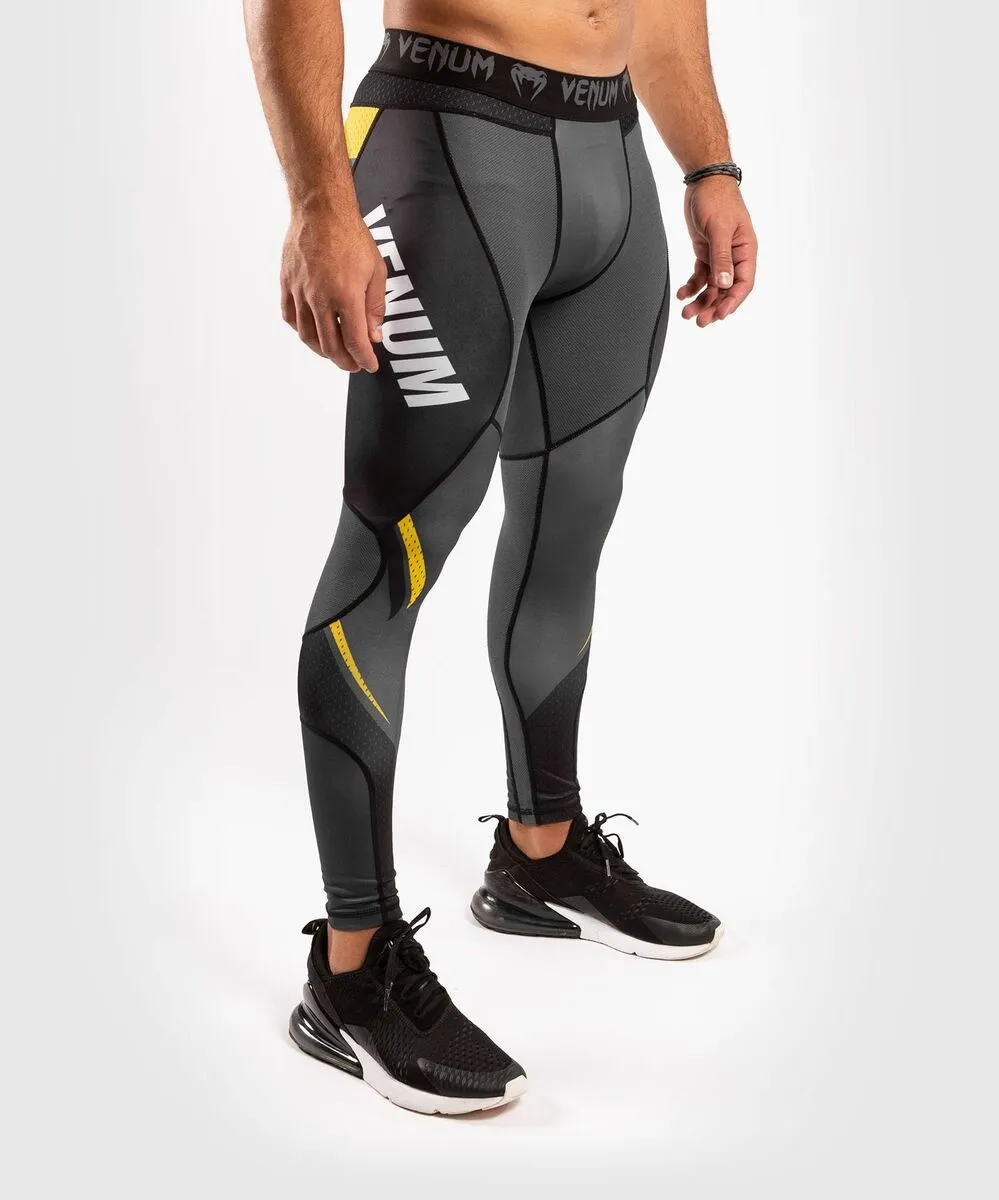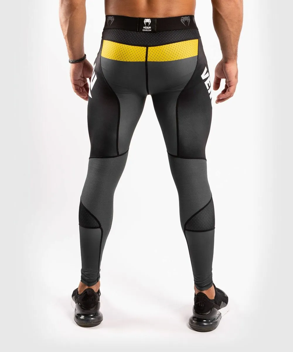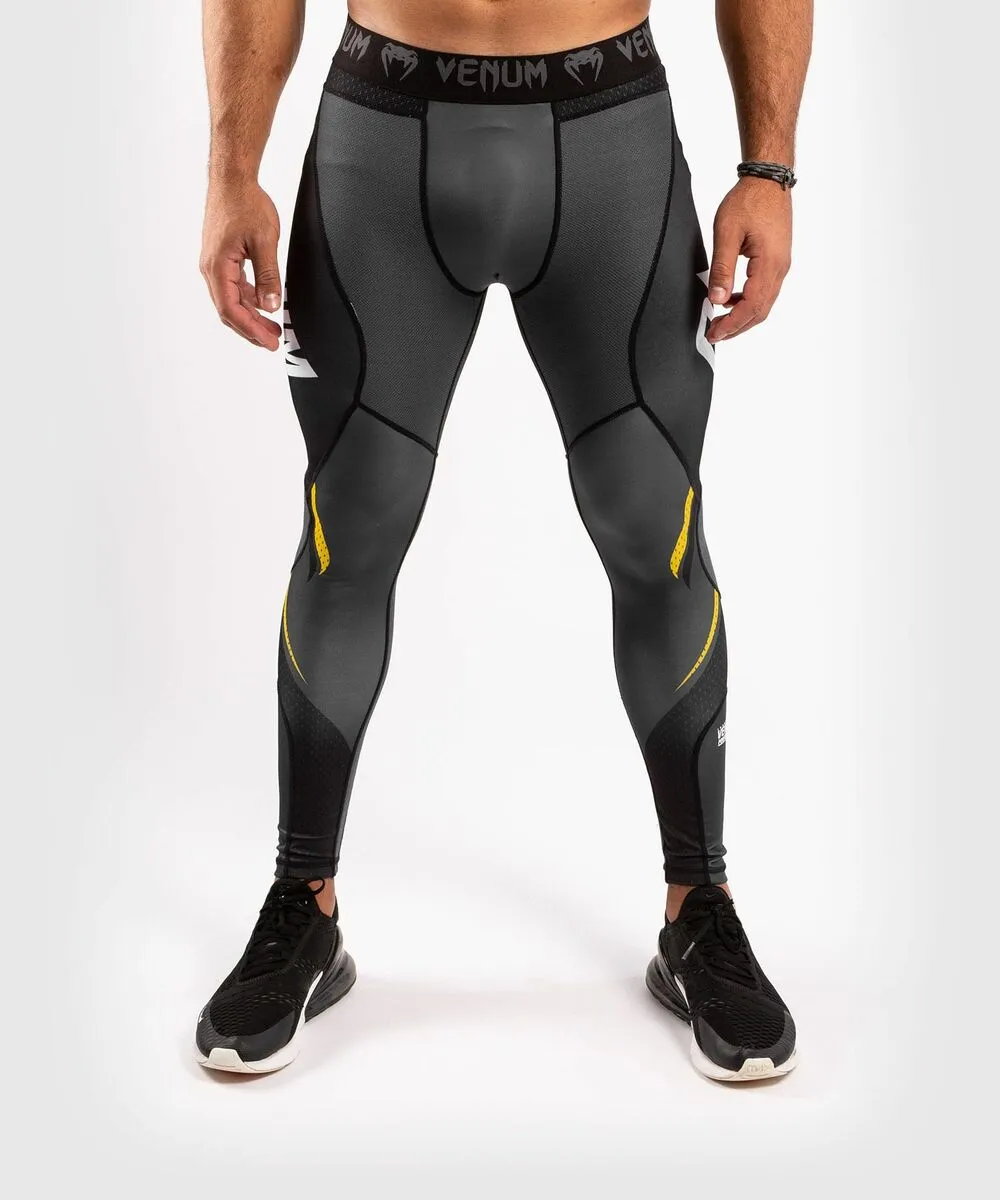 The Venum ONE FC Impact Spats are compression pants that optimize muscle recovery and improves perspiration wicking thanks to their large mesh panels. Lightweight, they protect the wearer from any friction or scrapes during ground training. It can be worn alone or under a pair of matching shorts from the ONE FC collection