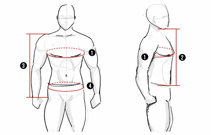 | SIZE | 1. CHEST SIZE (CM) | 2. FRONT LENGTH (CM) | 3. SLEEVE LENGTH (LONG SLEEVES) (CM) | 4. WAIST SIZE (CM) |