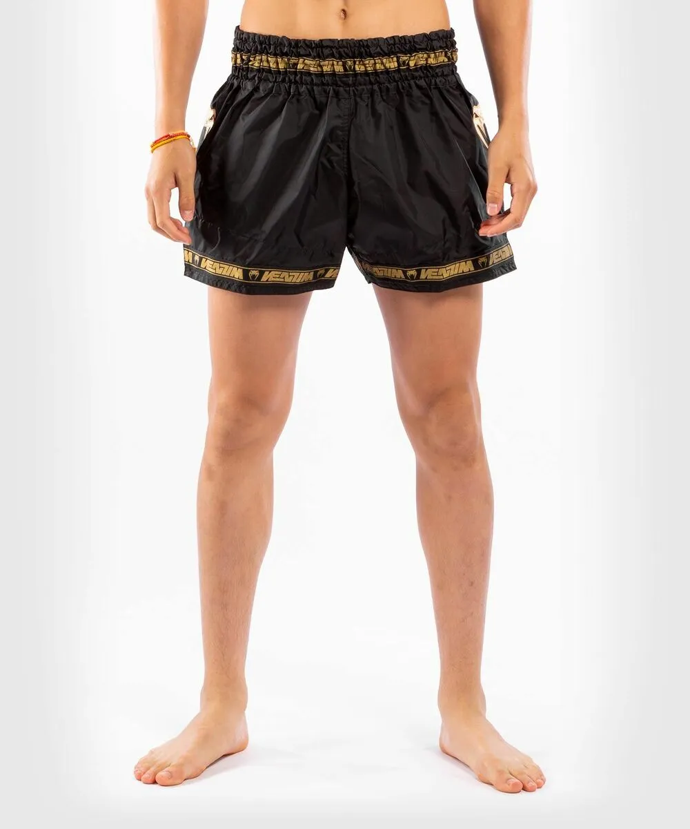 A traditional wide elastic waistband, featuring a large embroidered Venum logo, guarantees optimal support around the waist during combat.